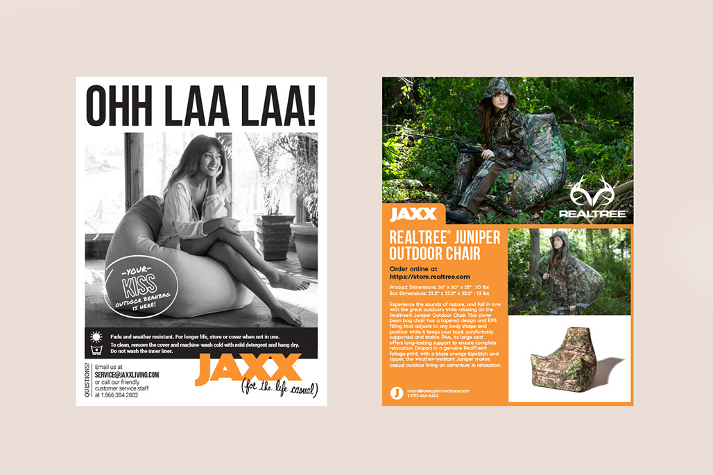 Jaxx designs and manufactures large foam bean bags, modular foam furniture and outdoor seating. Jaxx sells to multiple large scale retailers such as Walmart, Wayfair, Amazon and Overstock. I am challenged to make fun and engaging designs to capture the attention of families world wide, as well as compete with hundreds of other furniture companies for business.