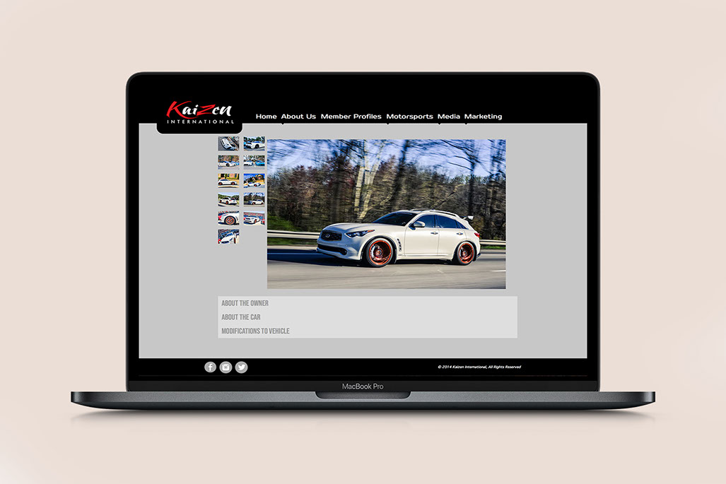 Team Kaizen International is the Motor-sports Division of Kaizen International Group, a company that focuses and specializes in Marketing, Promoting, and Advertising world wide. While working as Kaizen's Graphic Designer I was responsible for all company print and web graphics, custom t-shirt designs, custom logos and print material to represent Kaizen at events.