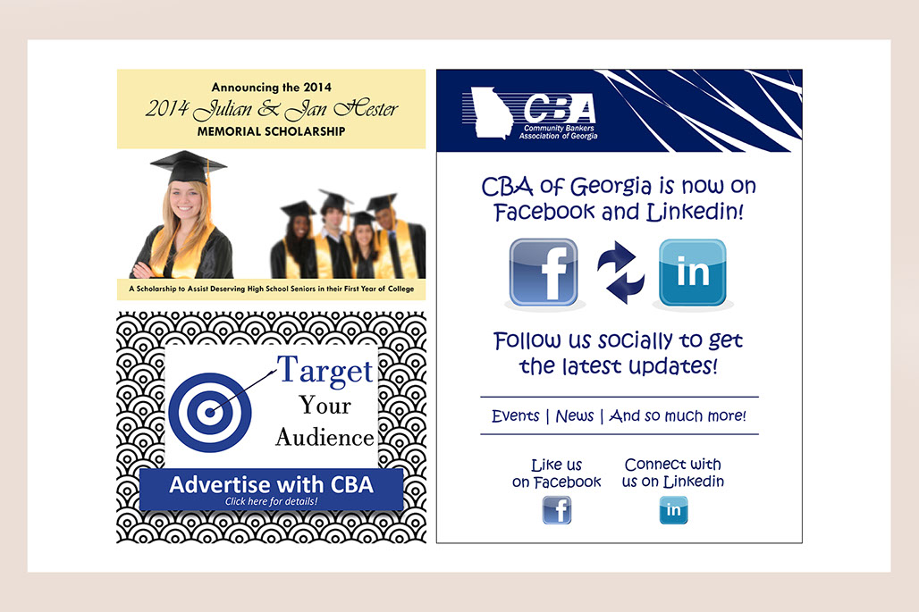 The CBA’s mission is to exclusively provide uncompromising advocacy, education and resources for its family of Georgia community banks while passionately promoting the state’s sound community banking industry. While working as in intern for CBA I worked on projects from email campaigns, flyer designs, managing social media accounts and web administrator tasks.